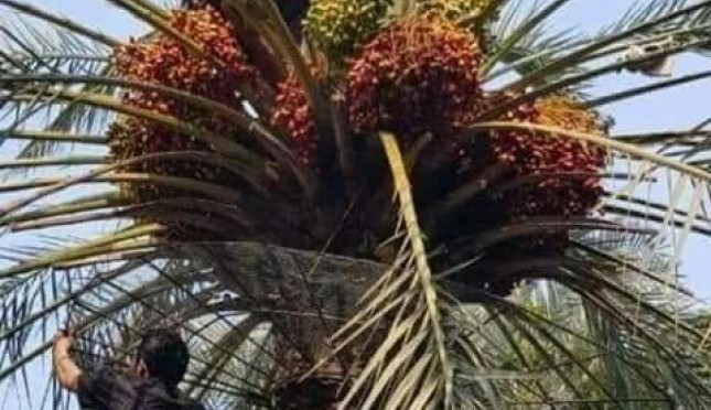 AGRONET -- Kurma di pelataran Masjid Agung Al Barkah, Bekasi, Jawa Barat, saat panenĀ  bulan Agustus tahun 2018 lalu. Pohon kurma yang ditanam di kompleks masjid setiap masa panen per tahunnya menghasilkan 30 killogram kurma yang dijual Rp250 ribu per kg dan keuntungannya untuk infak.(234)