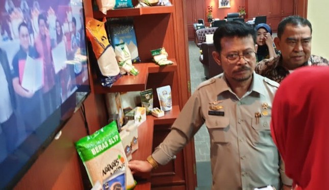 Mentan SYL melihat produk beras Bulog saat mengunjungi Gedung Bulog Jakarta. | Sumber Foto:Humas Kementan