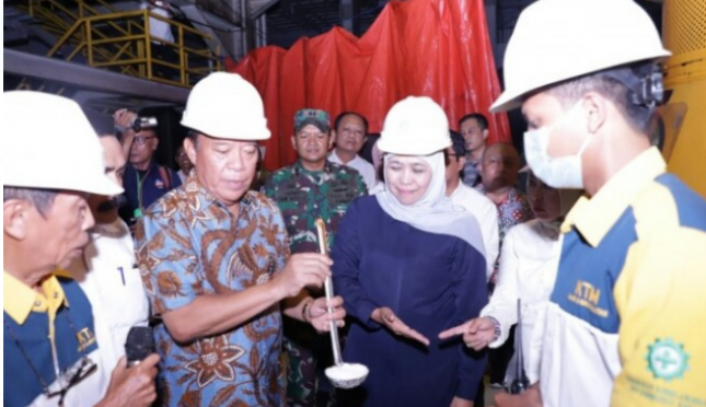 Gubernur Jawa Timur, Khofifah Indar Parawansa, saat memantau langsung kedatangan raw sugar dari Thailand di Lamongan | Sumber Foto:Kantor Berita Radio Nasional