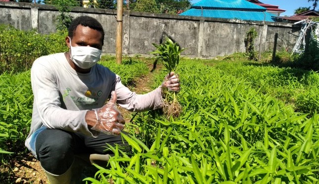 Sang putra daerah Wamena dengan ulet merawat tanaman kangkung yang ia garap.  Tanpa meninggalkan kewajibannya sebagai mahasiswa dengan melakukan blanded learning  Domi menyempatkan diri untuk memanen tanaman yang telah ia garap.