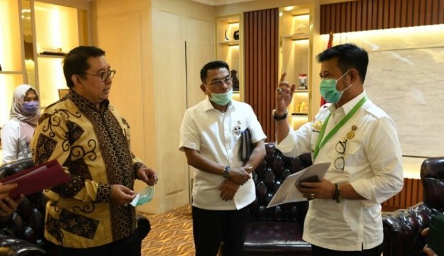 Mentan SYL (kanan), Moeldoko (tengah), dan Fadli Zon saat pertemuan di Kantor Kementan Jakarta. | Sumber Foto: Humas Kementan