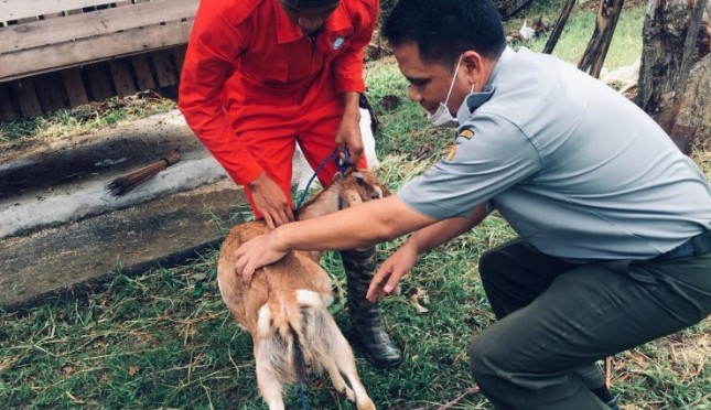 Direktur Polbangtan Manokwari, drh. Purwanta, M.Kes melakukan pemeriksaan pada ternak kambing | Sumber Foto:Tim Medsos Polbangtan Manokwari
