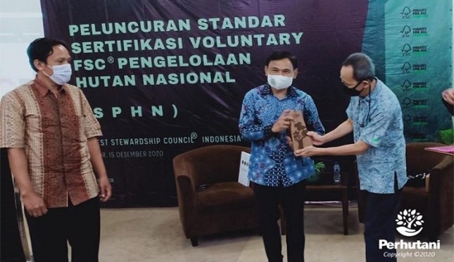 Penghargaan tersebut diberikan oleh Country Manager FSC® Indonesia Hartono Prabowo kepada Perhutani yang diterima Direktur Pengembangan Bisnis dan Pemasaran Ahmad Ibrahim berupa penghargaan sebagai FSC Certificate Holder Pertama di Indonesia.
