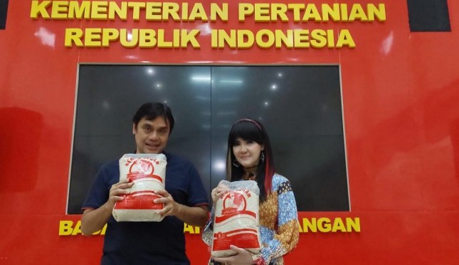 Artis Ita Purnamasari dan suami Dwiki Darmawan saat berbelanja di Toko Tani Indonesia Pasar Minggu Jakarta. | Sumber Foto:Humas BKP Kementan