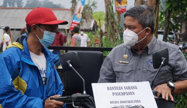 Pada kunjungan kerjanya, jajaran Kementan memberikan bantuan APBN berupa 2 unit kendaraan roda 3, benih bawang putih, pupuk hayati cair dan mulsa untuk 20 hektar senilai Rp. 320 Juta kepada kelompok tani Kayu Manis.