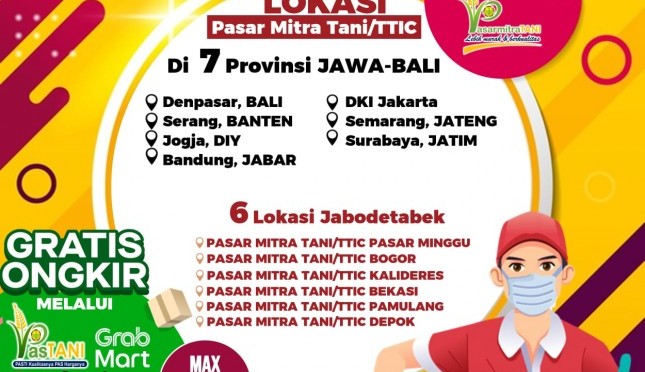 "Untuk memberikan kemudahan bagi masyarakat mengakses bahan pangan, Pasar Mitra Tani  melayani penjualan online melalui jasa layanan online seperti Gojek dan Grab, bahkan ada aplikasi marketplace sendiri yaitu PasTani," ujar Agung, Minggu (4/7)